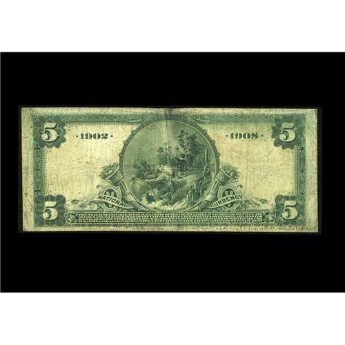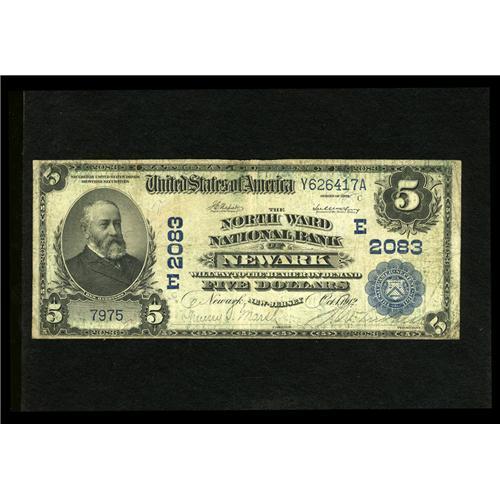 <B>Newark, NJ</B></I> - $5 1902 Date Back Fr. 594 <B>The North Ward NB </B></I> Ch. # (E)2083<BR>This is the first time we have had a note with this title in one our auctions. The stamped signatures are still visible while there is some minor wallet staining throughout. <B>Fine.</B></I>