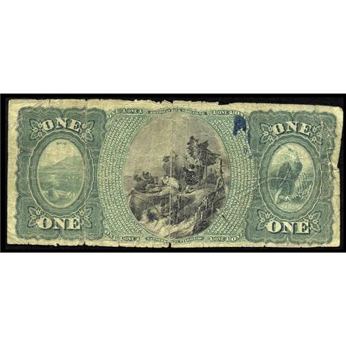<B>Newark, OH</B></I> - $1 Original Fr. 380 <B>The First NB </B></I> Ch. # 858<BR>A <B>Very Good</B></I> First Charter Ace from a new addition to the census; just a few serials removed from the beginning of a large run of uncirculated $1 Originals from here. While there is considerable circulation and some margin roughness, the note is basically intact and retains legible signatures.