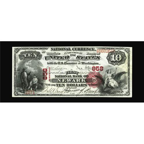 <B>Newark, OH</B></I> - $10 1875 Fr. 419 <B>The First NB</B></I> Ch. # 858<BR>A perfect type example loaded with originality. Other than having the top reverse margin a bit close, this is a flaming gem with the brightness and paper quality of a note printed this morning. <B>Choice Crisp Uncirculated,</B></I> a beautiful note likely to see bidding reach or exceed...