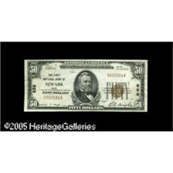 <B>Newark, OH</B></I> - $50 1929 Ty. 1 <B>The First NB </B></I> Ch. # 858<BR>This <B>Extremely Fine</B></I> example was likely put away as a keepsake, as it is from the last sheet printed. Although this community supported five issuing banks, this is the only one which emitted the $50 Type 1. Our Long Beach Signature Sale in September of 2004 included a Crisp Uncirculated, which sold for $575. This fully original note will go for somewhat less tonight. Lot:16951