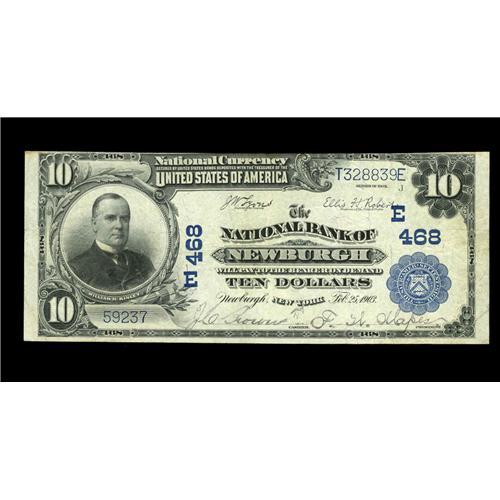 <B>Newburgh, NY</B></I> - $10 1902 Plain Back Fr. 624 <B>The NB </B></I> Ch. # (E)468<BR>A bright and vividly colored <B>Fine-Very Fine</B></I> note from this Orange County bank.