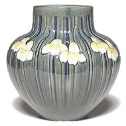 Newcomb vase, reproduction produced in 1993, carved floral design under a high glaze, 6”h, marked
