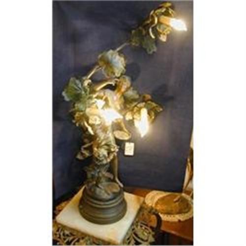 Newel Post Lamp by Moreau. Figures of lady and child entitled ""Premier Appel"" by Aug. Moreau. Beautiful sculpture with famous signature. Auguste Moreau, (1834 Dijon - 1917 Malesherbes (Loiret)), est un sculpteur français. Il a produit essentiellement des bronzes. Plusieurs de ses uvres sont conservées aux musées des beaux-arts de Troyes et de Bordeaux. - /Auguste_Moreau