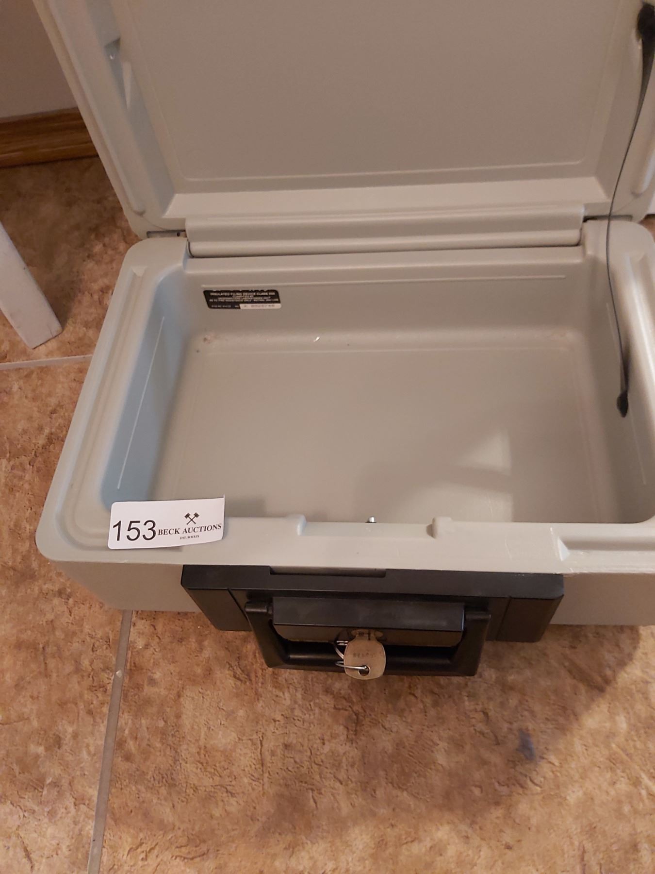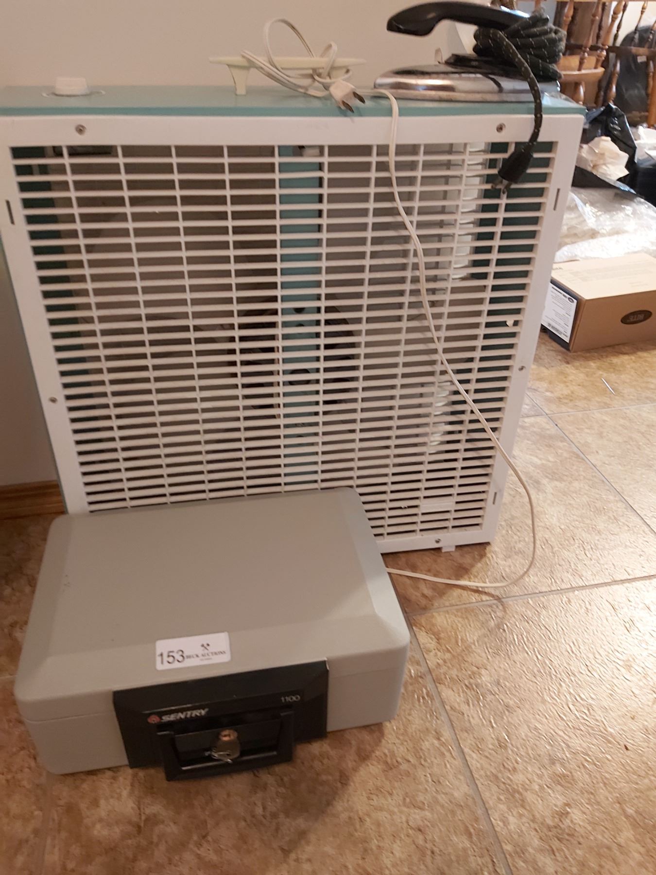 Newer Safe With Key Plus an Oscillating Fan Including Antique Iron