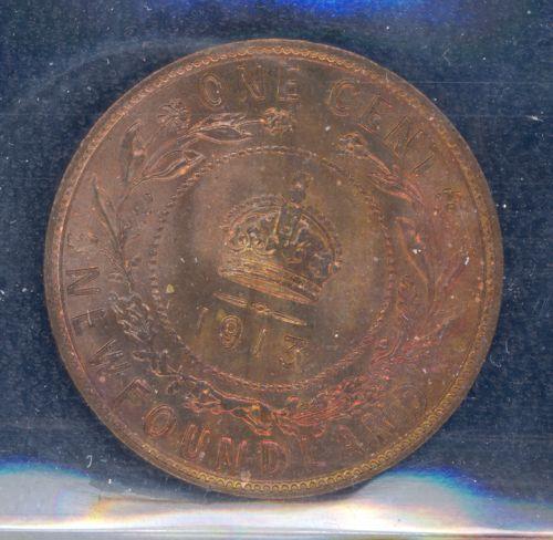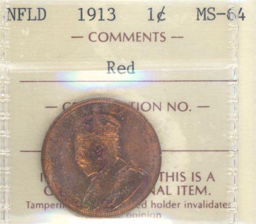 Newfoundland 1 Large Cent 1913 ICCS certified MS-64; Red. Gem red easely.