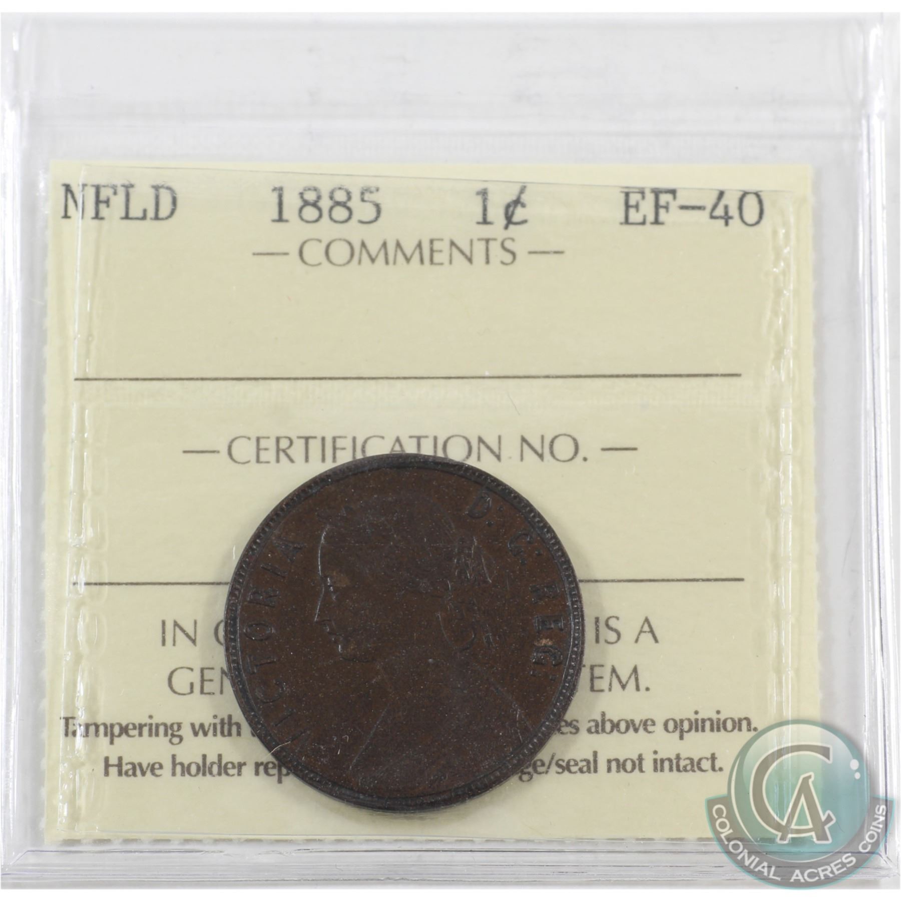 Newfoundland 1-cent 1885 ICCS Certified EF-40