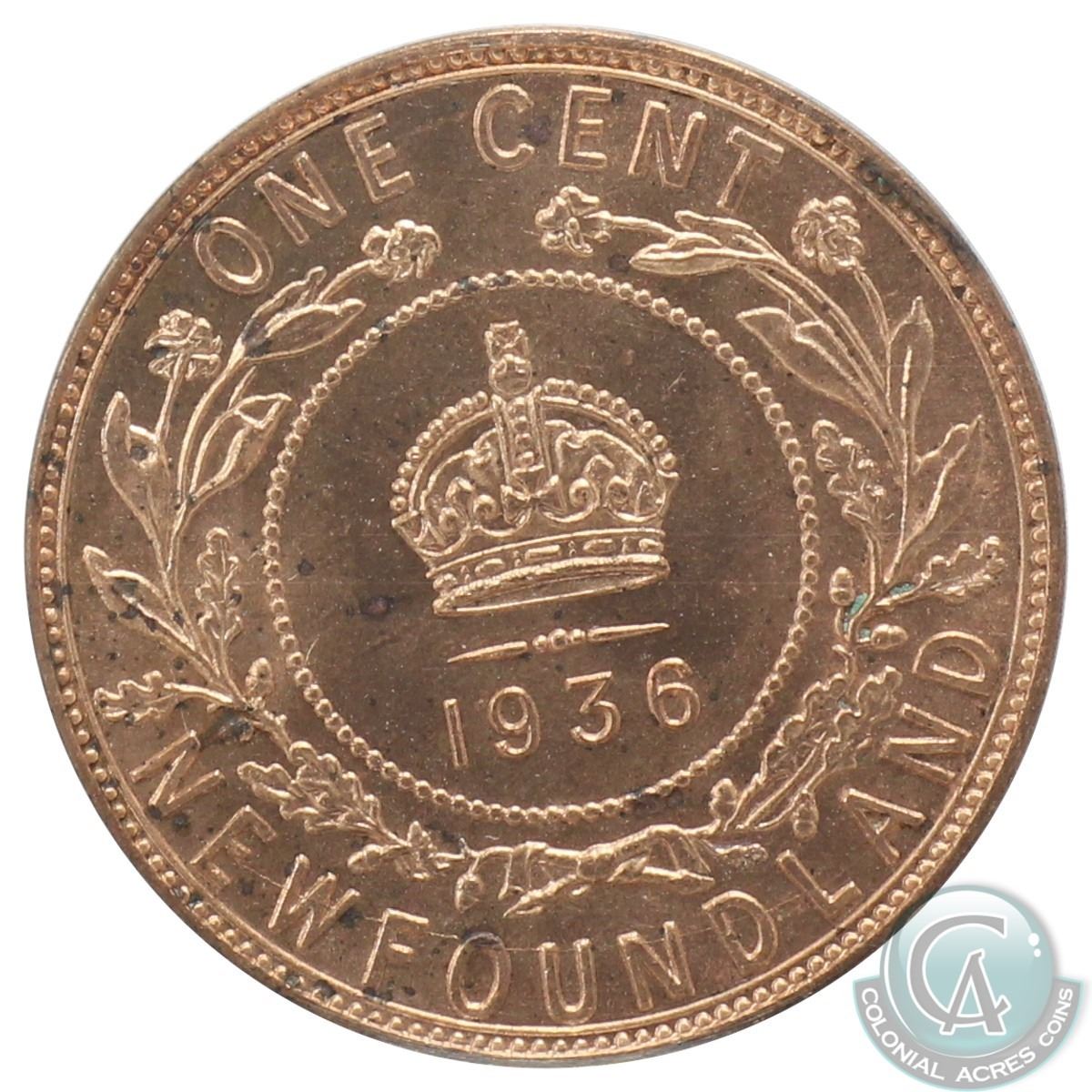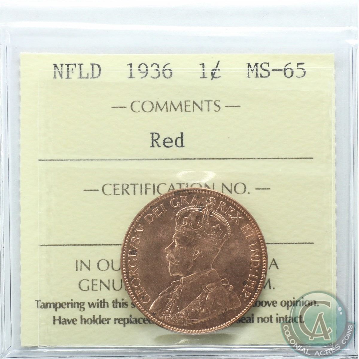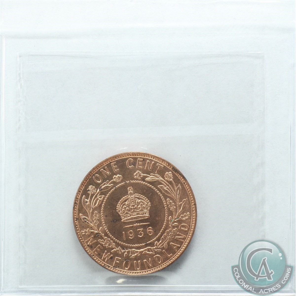 Newfoundland 1-cent 1936 ICCS Certified MS-65 Red.