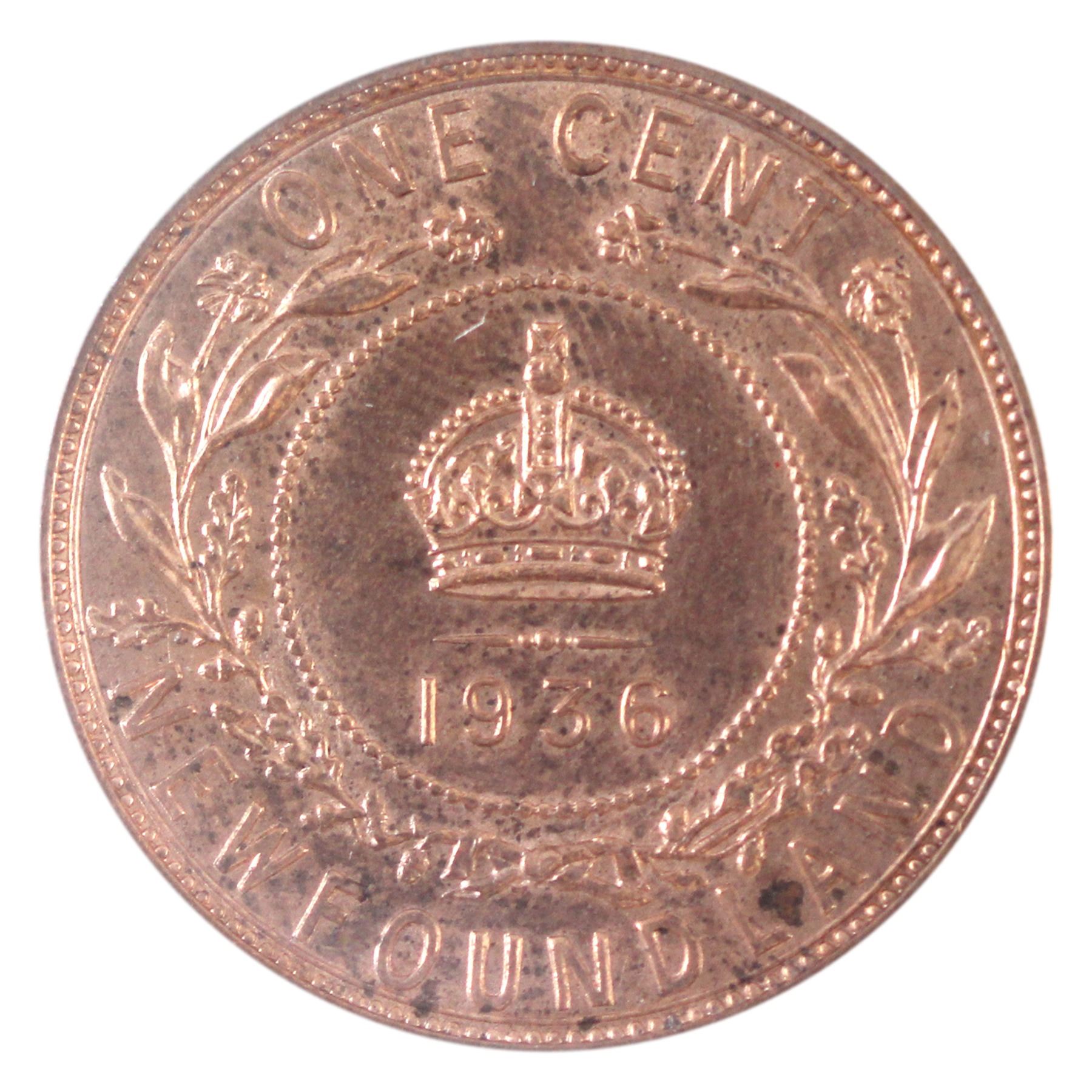 Newfoundland 1-cent 1936 ICCS MS65 Red