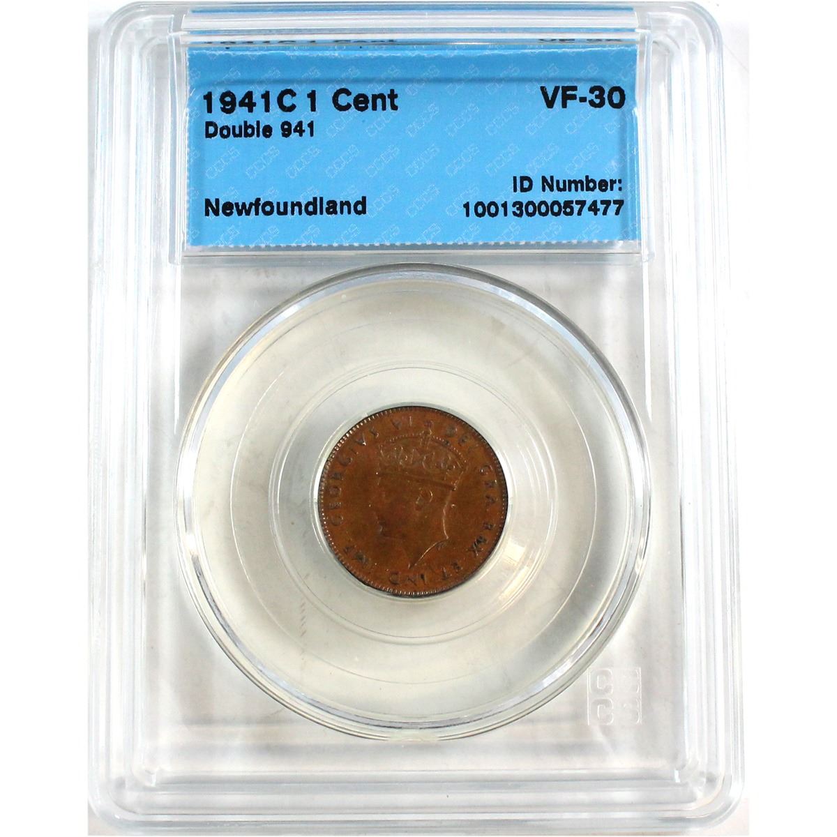Newfoundland 1-cent 1941C Double 941 CCCS Certified VF-30