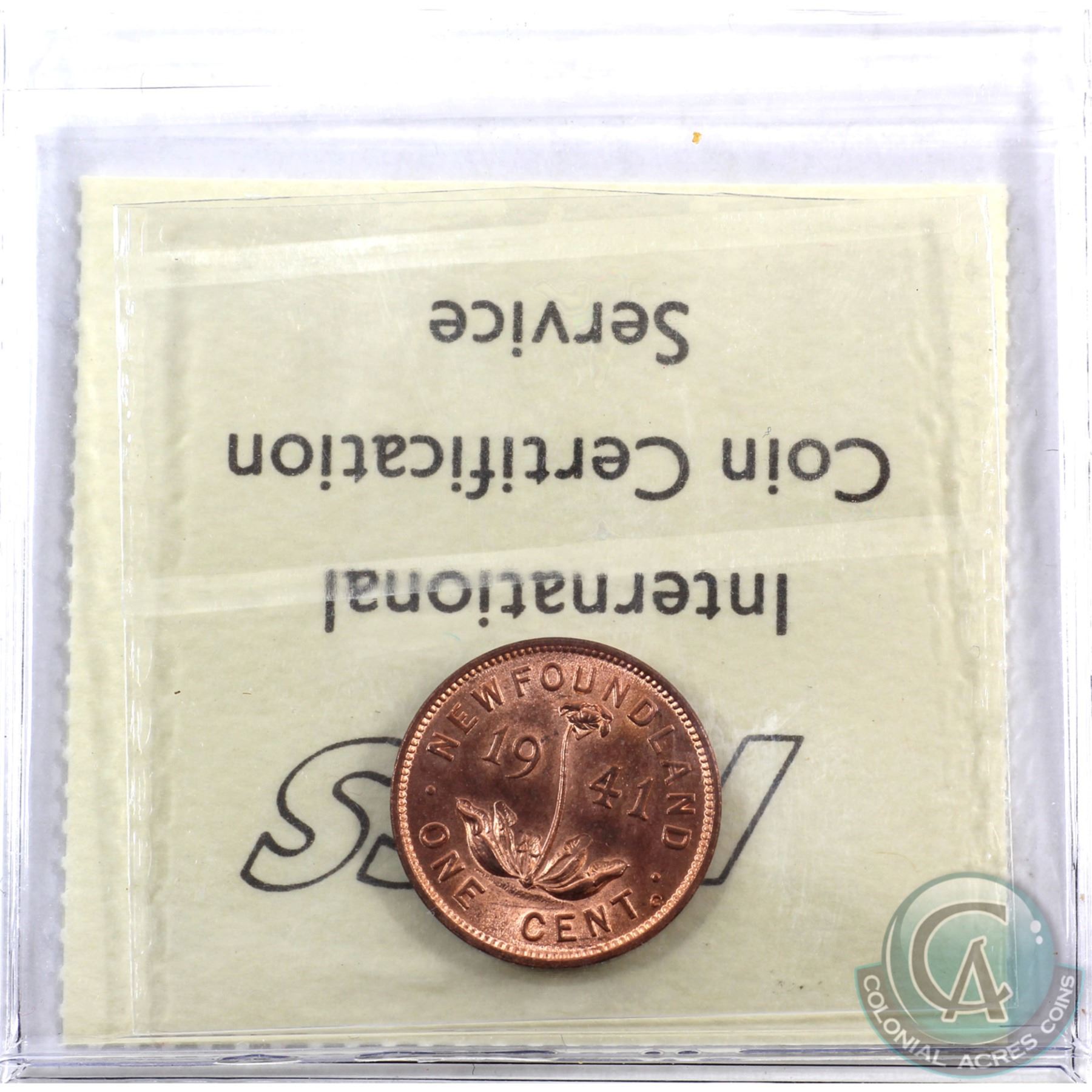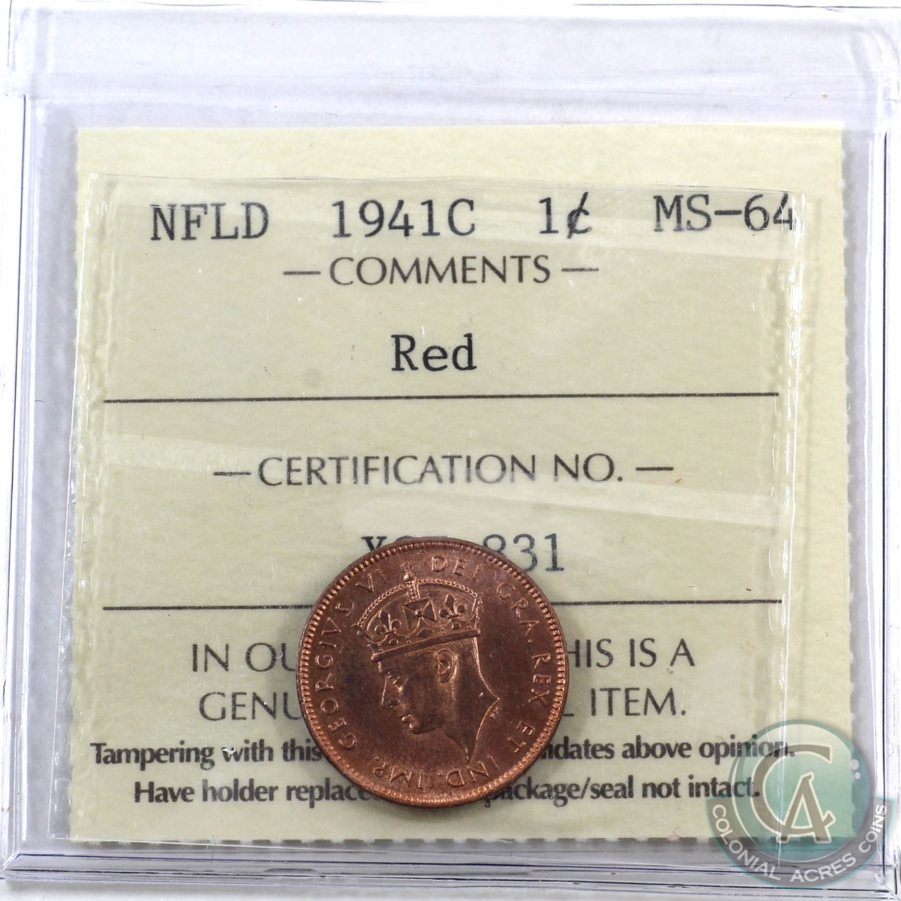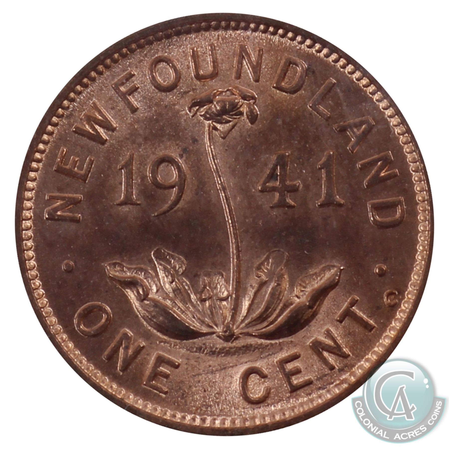 Newfoundland 1-cent 1941C ICCS Certified MS-64 Red! Nice original red with rolling lustre throughout the coin. Worth a good Look!