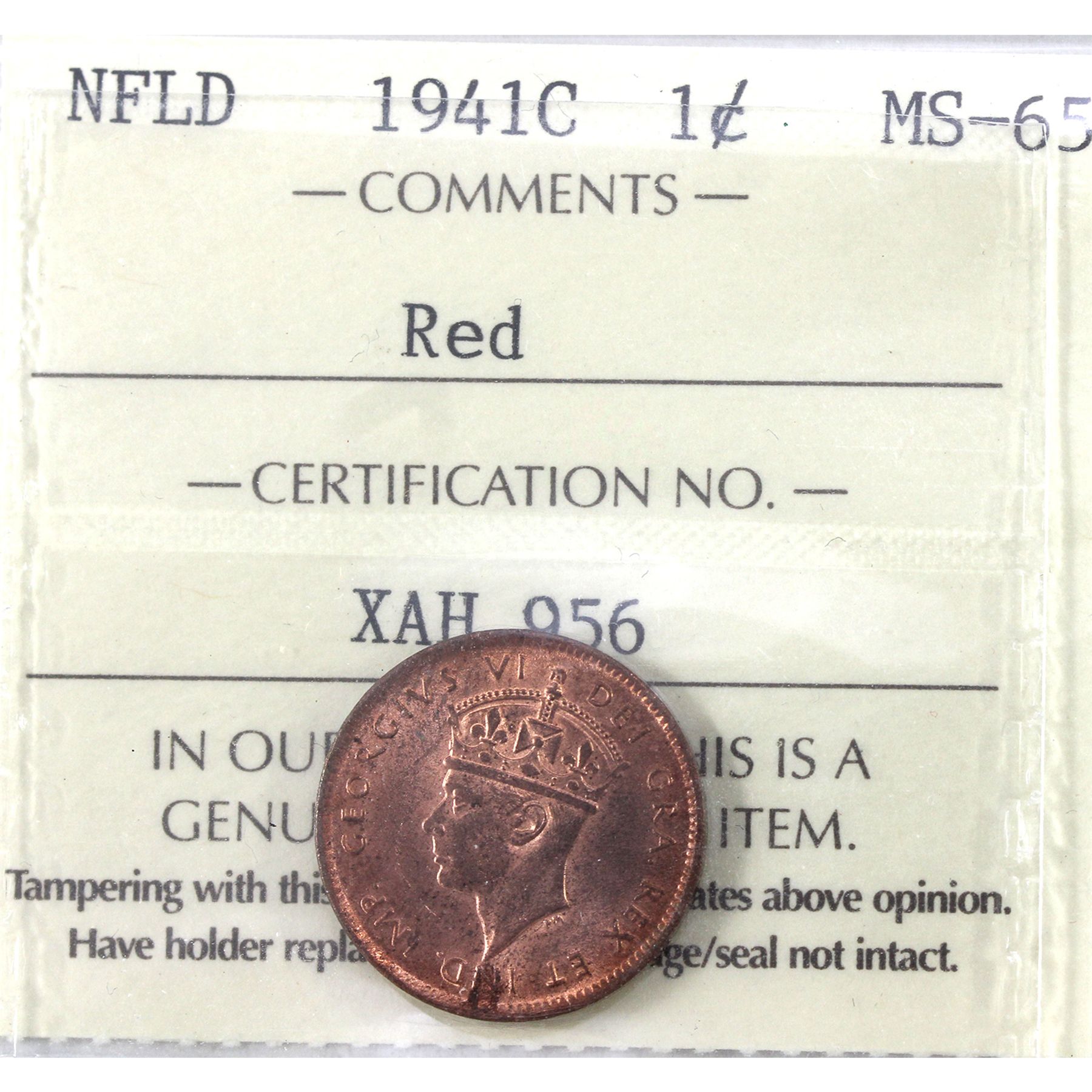 Newfoundland 1-cent 1941C Red ICCS MS65