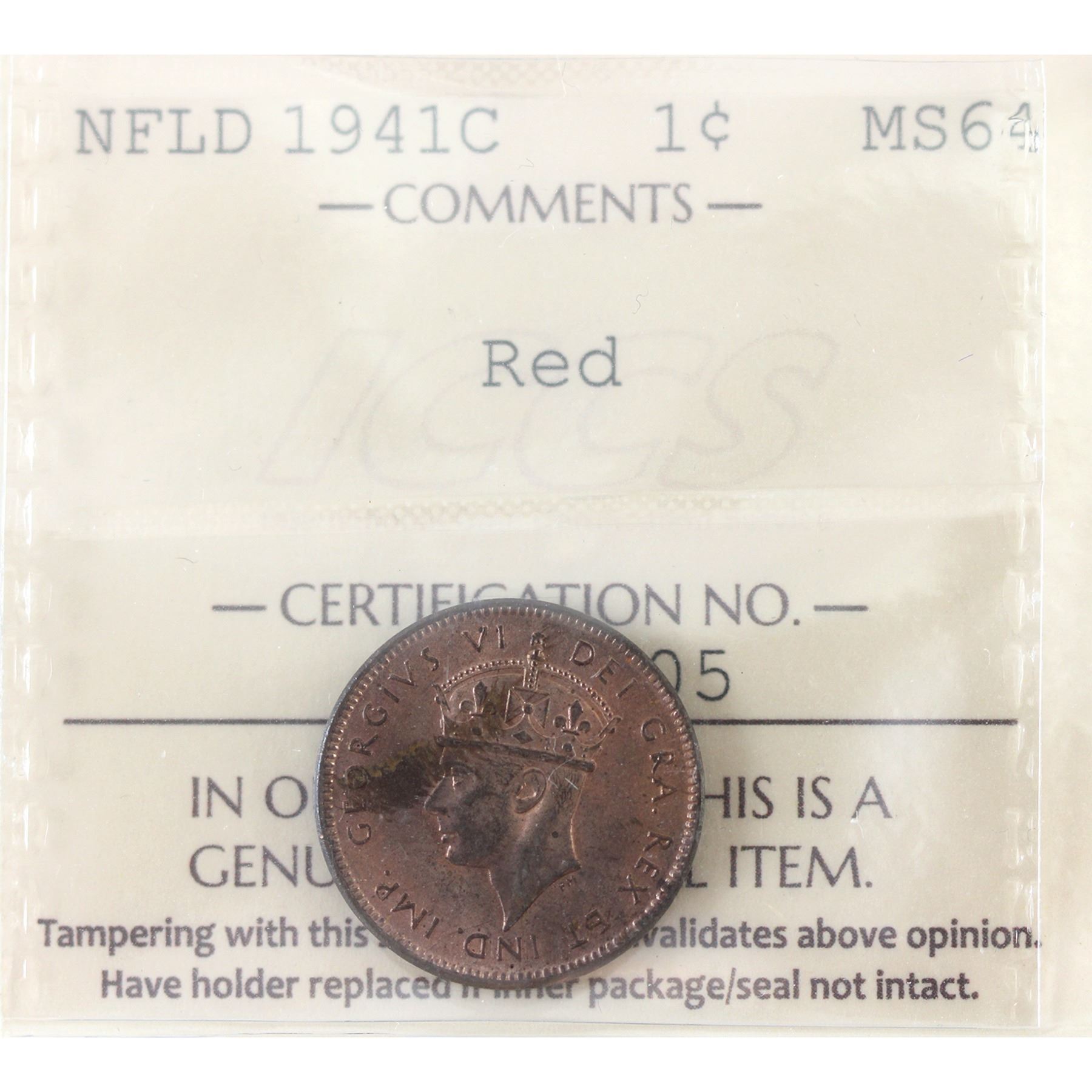 Newfoundland 1-cent 1941c ICCS MS64 Red