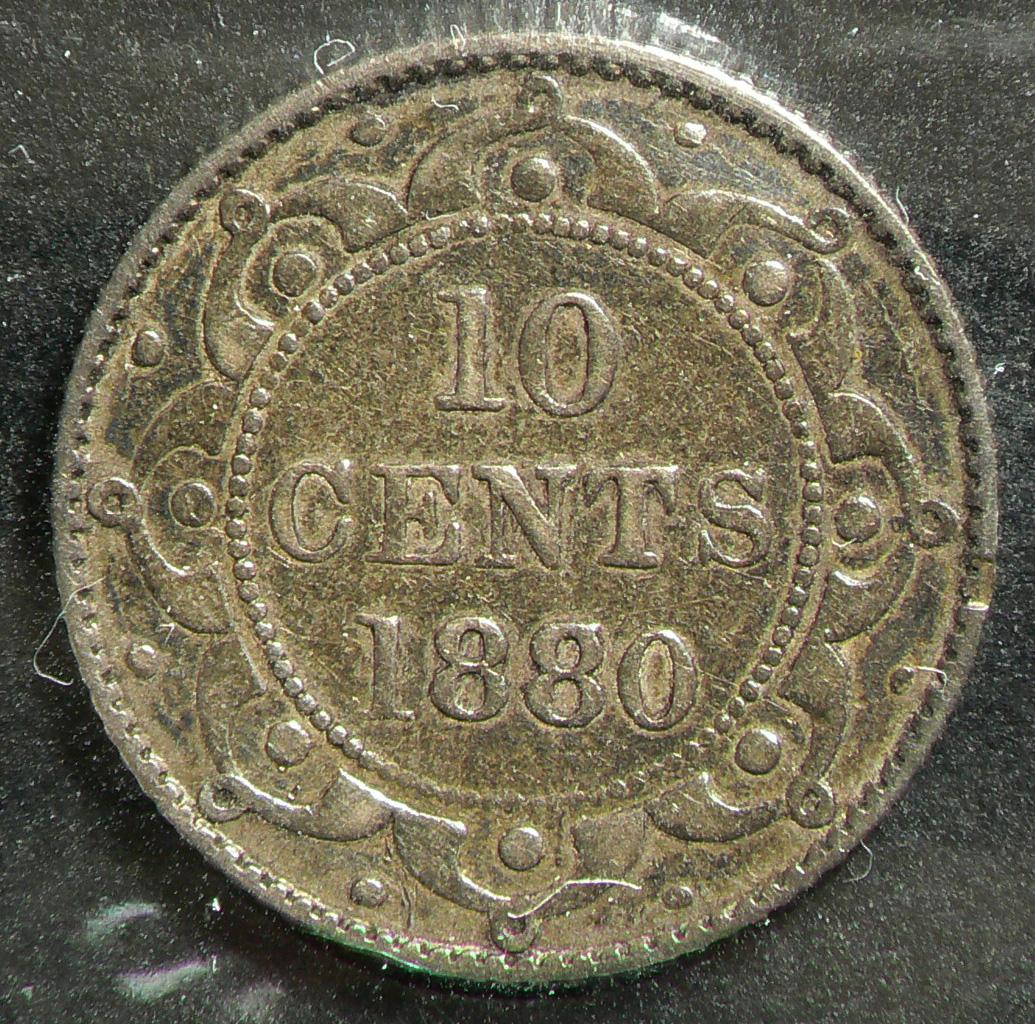 Newfoundland 10 Cents 1880, graded CCCS VF-20.