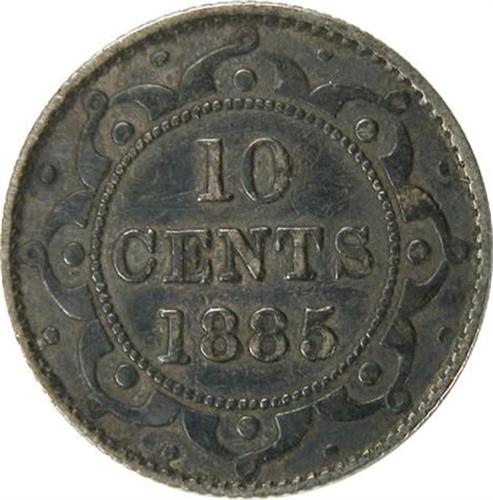 Newfoundland Ten Cents 1885, VF Cleaned. Medium slate toning