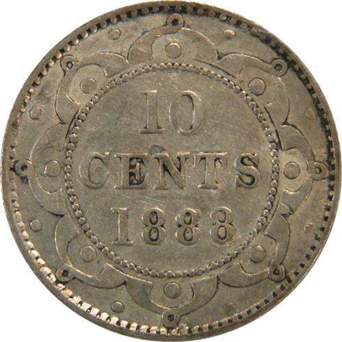 Newfoundland Ten Cents 1888 ICCS VF-20. This is a rather sharp example with considerable remaining lustre and a pleasant pale golden toning. There are some small marks on the obverse, not mentioned on the certificate