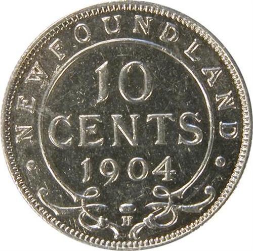 Newfoundland Ten Cents 1904H ICCS EF-40. Near untoned