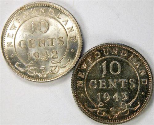 Newfoundland 10 Cents 1942C, 1943C, Unc