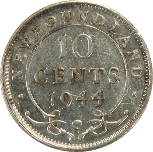 Newfoundland Ten Cents 1944C CCCS AU-50. Untoned