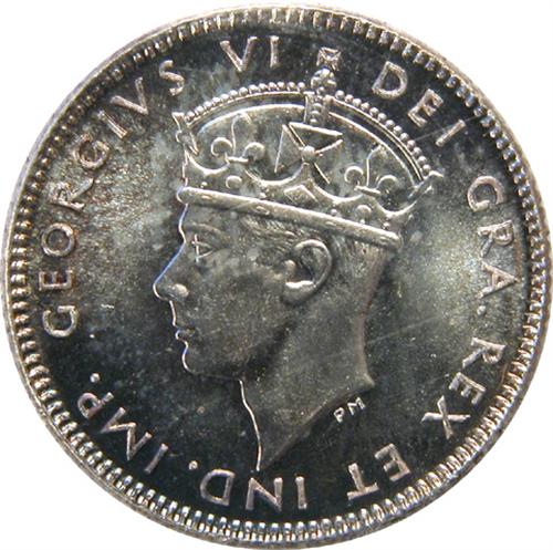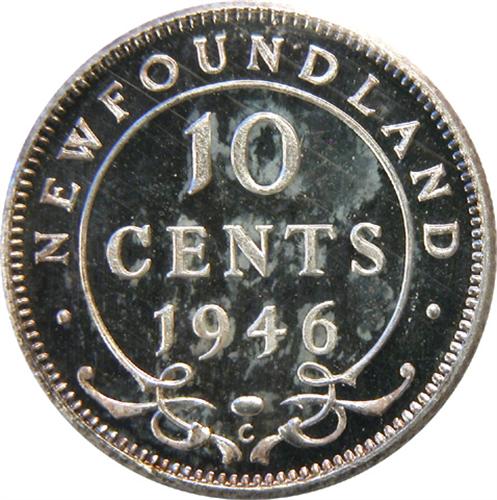 Newfoundland Ten Cents 1946C ICCS MS-66PQ+. This is a fully struck and superbly lustrous piece with a very pale mauve-amber and blue rim toning. It is accompanied by an ICCS Executive Certificate, which accords it with Superb Eye Appeal, and states in part, “Its overall superb eye appeal is a direct result if its outstanding lustre and flawless surfaces”. It is tied with one other as the highest graded by ICCS, while PCGS has graded two at this level and one at MS-67. From the Point Grey Collection