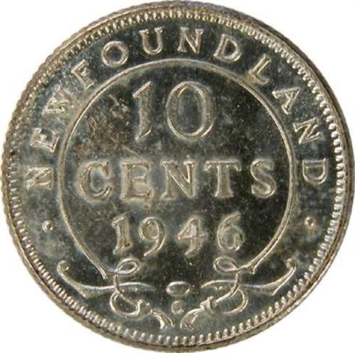 Newfoundland Ten Cents 1946C Uncirculated. Near untoned