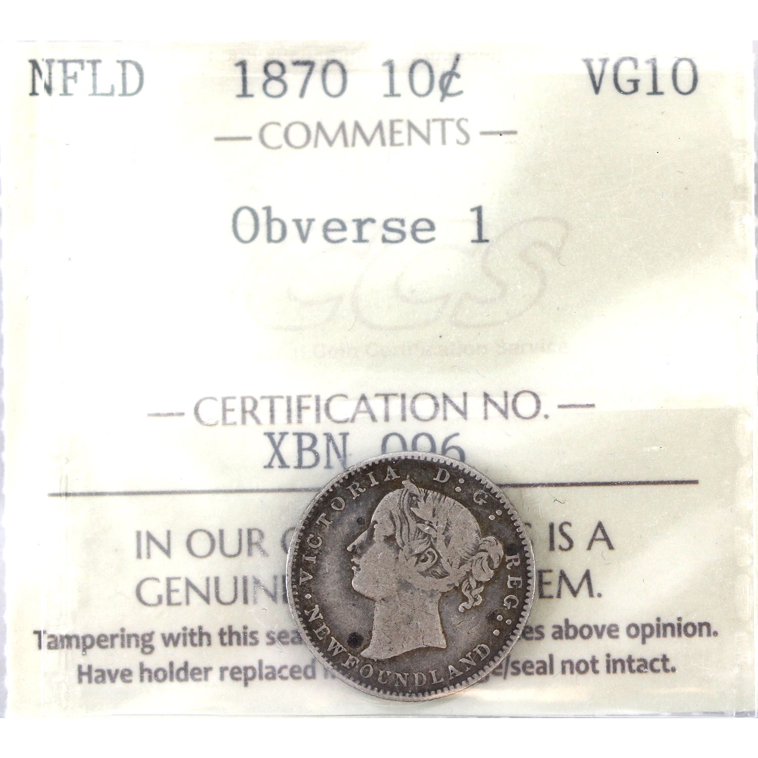 Newfoundland 10-cent 1870 Obverse 1 ICCS VG10