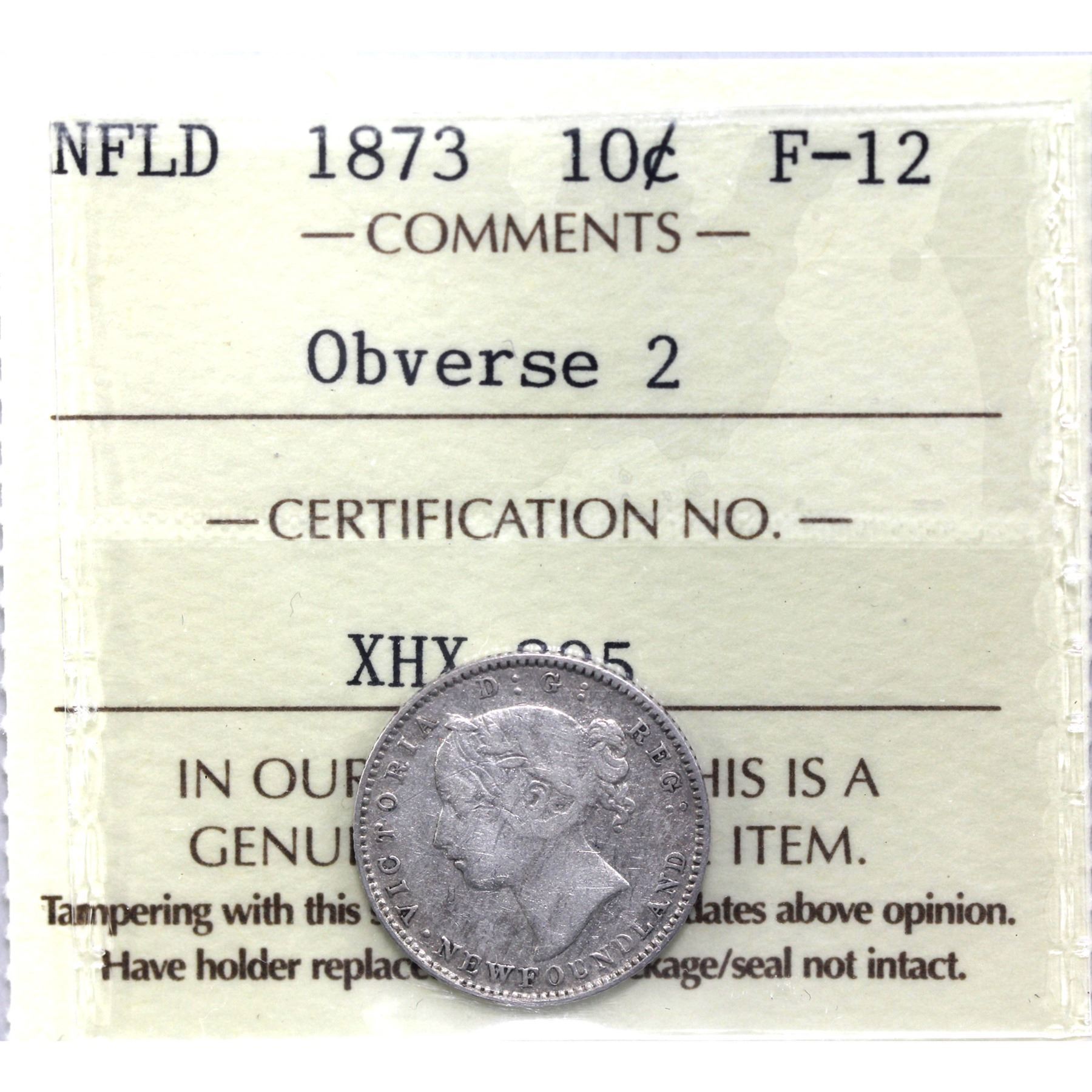 Newfoundland 10-cent 1873 Obverse 2 ICCS Certified F-12 *Key Date*