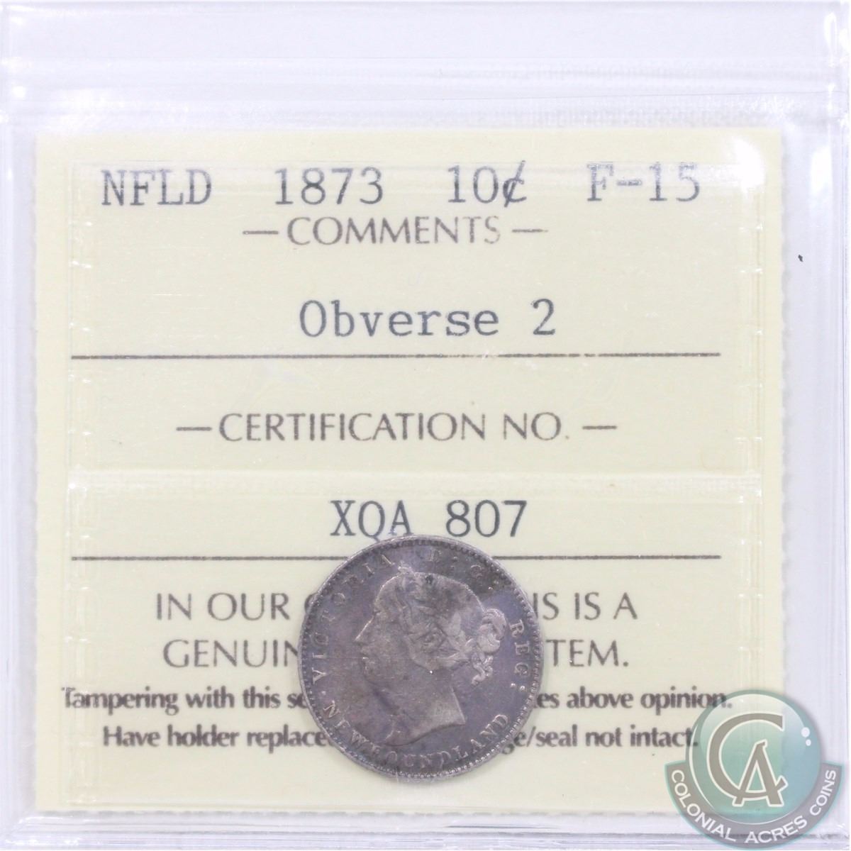 Newfoundland 10-cent 1873 Obverse 2 ICCS Certified F-15