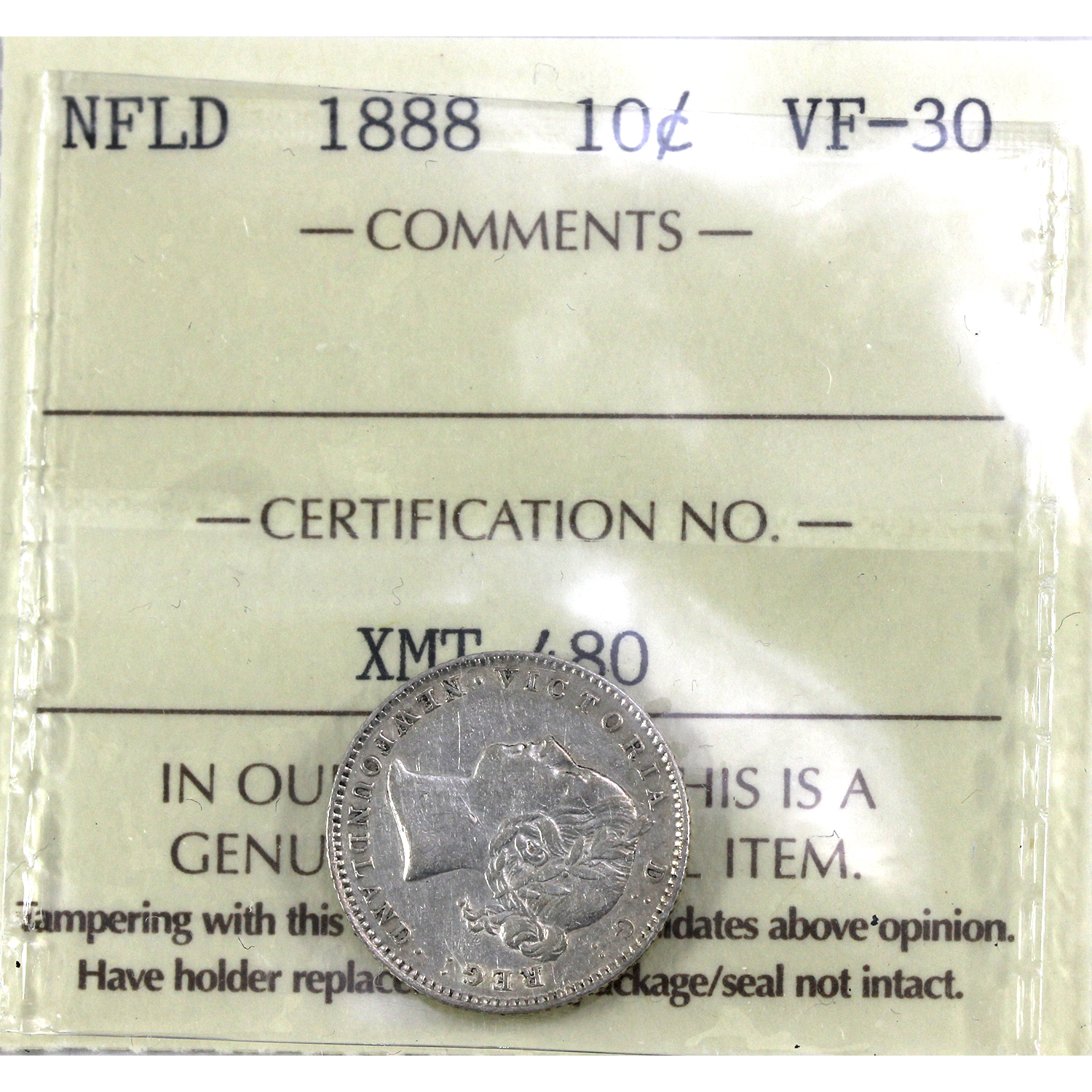 Newfoundland 10-cent 1888 ICCS VF30 *Key Date!*