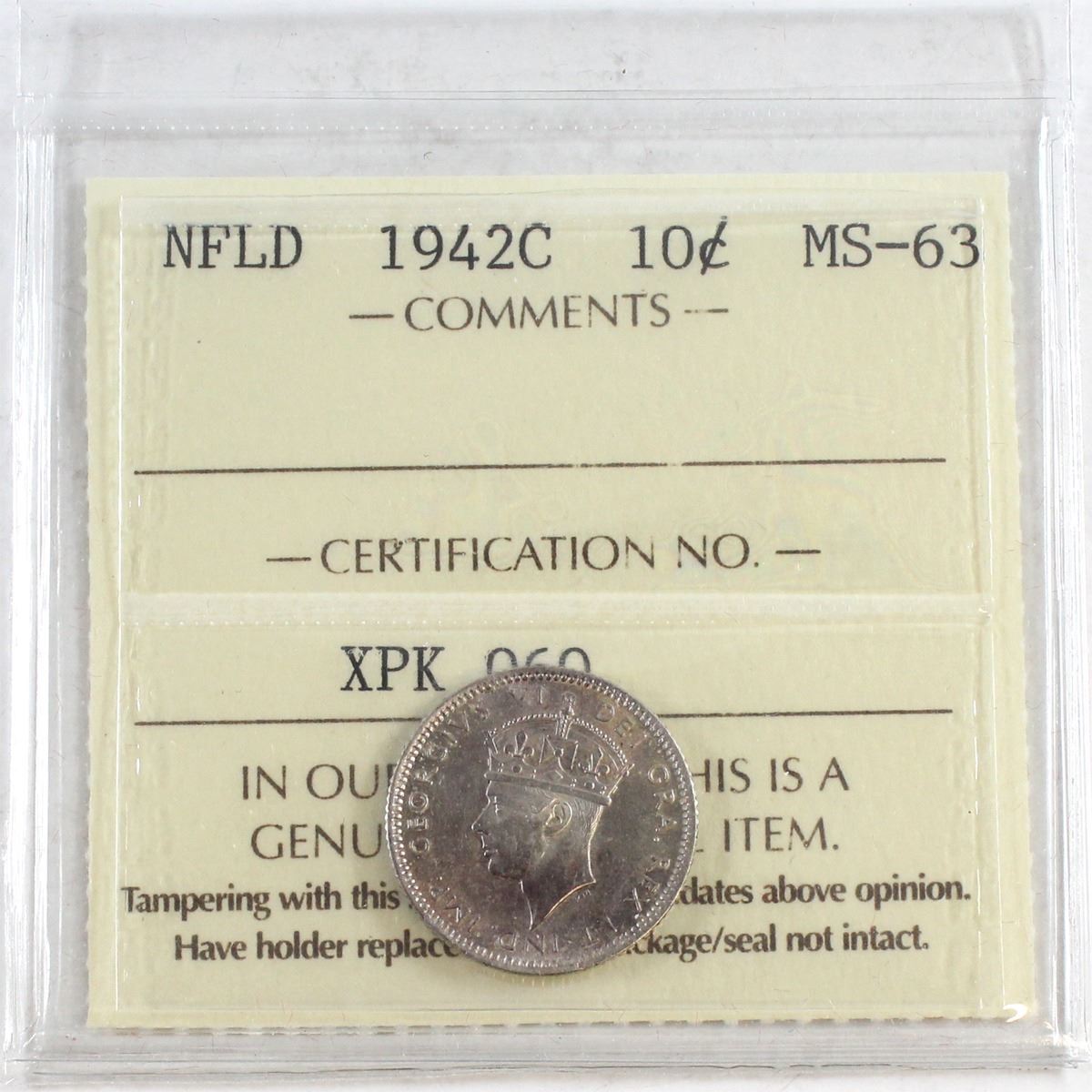 Newfoundland 10-cent 1942C ICCS Certified MS-63