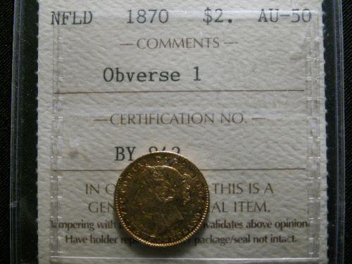 Newfoundland 1870 "3 dot" $2 Gold ICCS AU50, Scarce this nice!