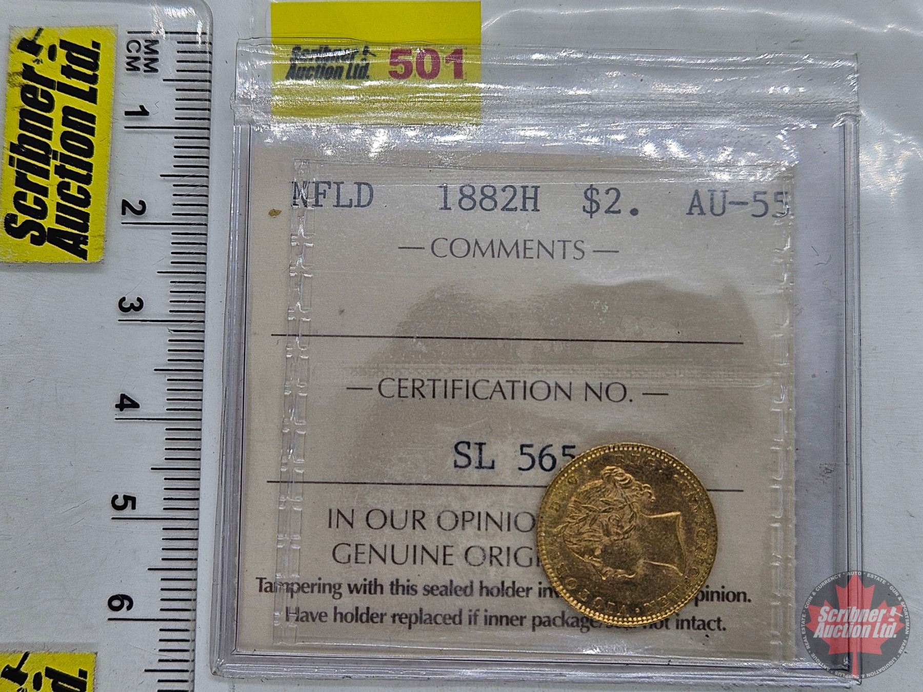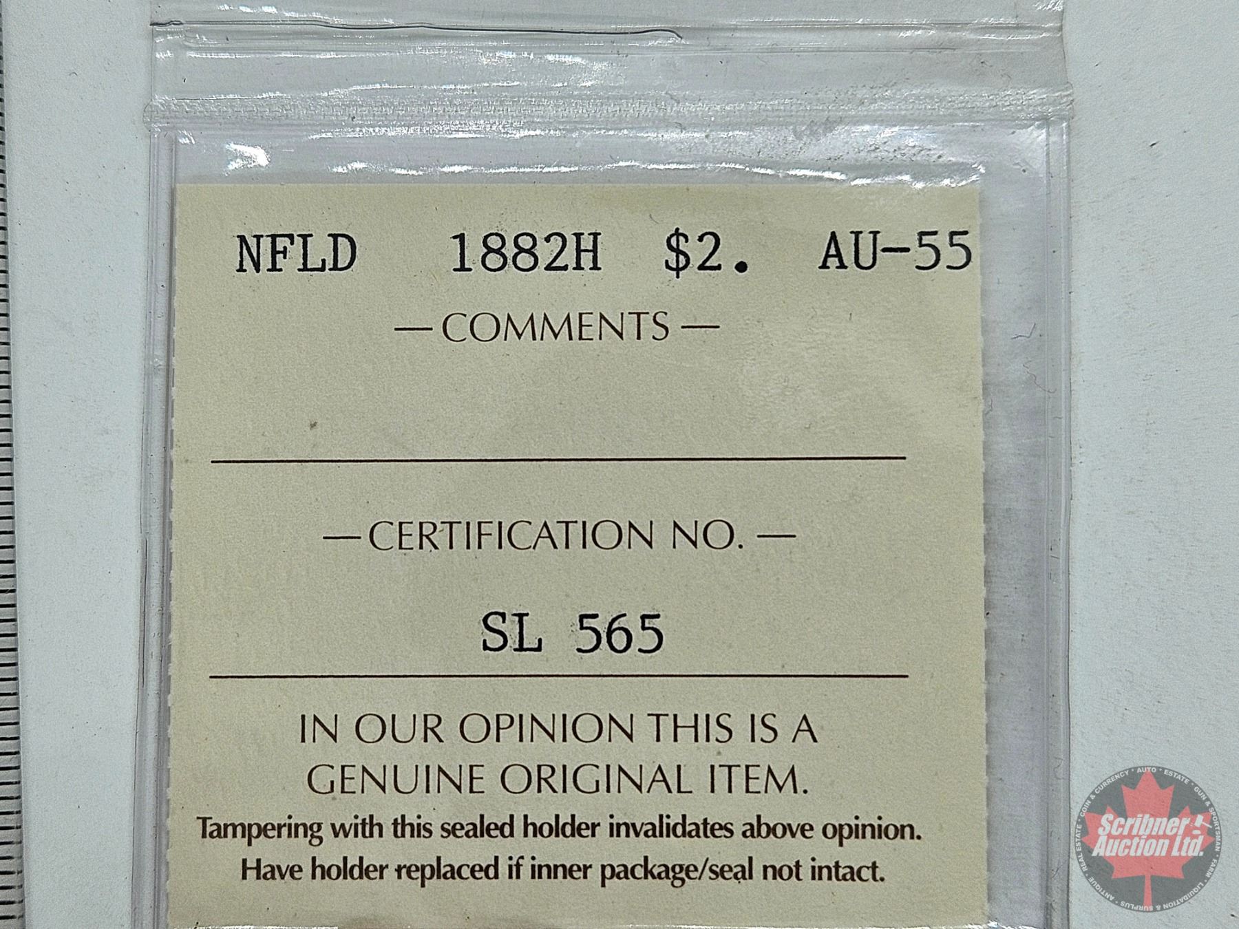Newfoundland 1882H : $2 Gold Coin (ICCS Cert: AU-55)