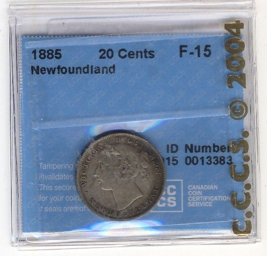 Newfoundland 1885 20 Cents, CCCS F-15.