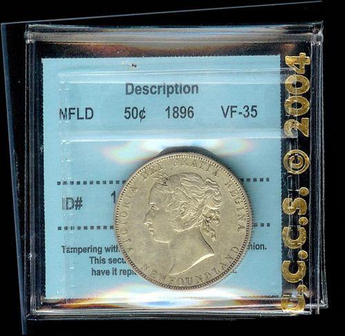 Newfoundland 1896 50¢ CCCS VF35. Light toning with underlying lustre.