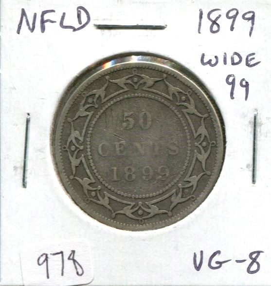 Newfoundland. 1899 Wide 99 Victorian Silver 50 Cents. The scarcer of the 2 varieties. VG-8.