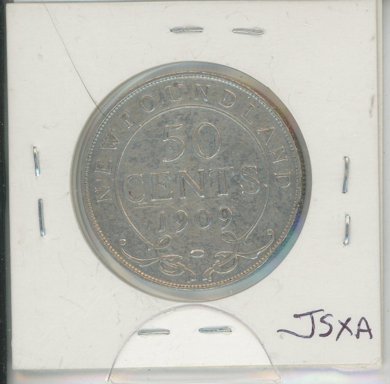 Newfoundland 1909 silver 50 cents VF-20. nice.