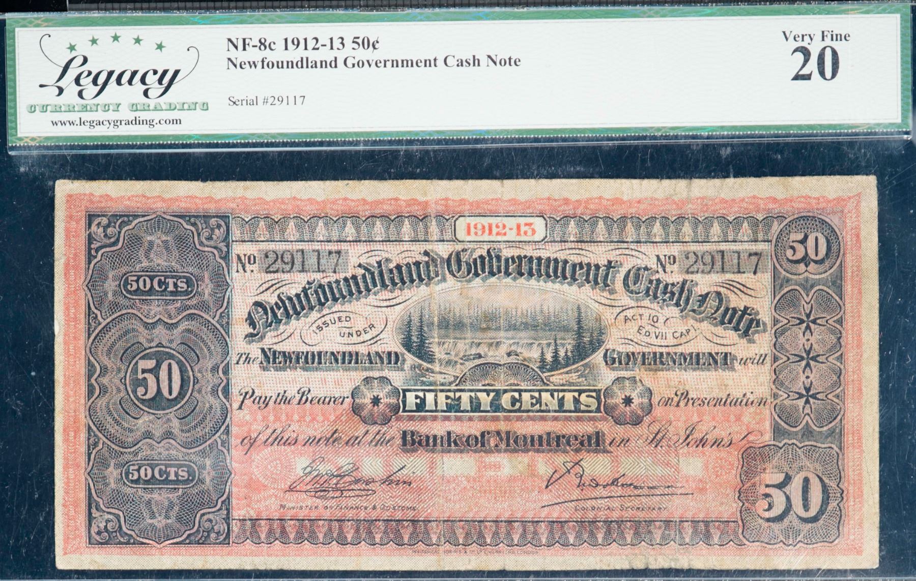 Newfoundland 1912-13 50¢ NF-8c Cash Note #29117, Legacy Very Fine-20.