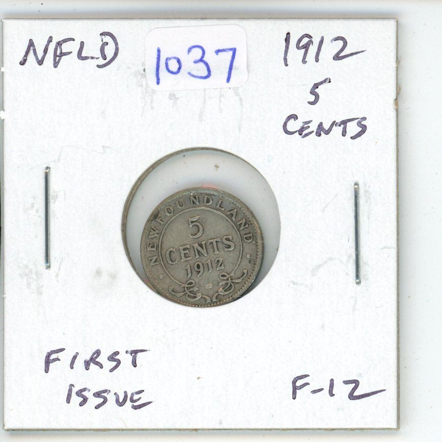 Newfoundland. 1912 Silver 5 Cents. First issue of King George V. F-12.