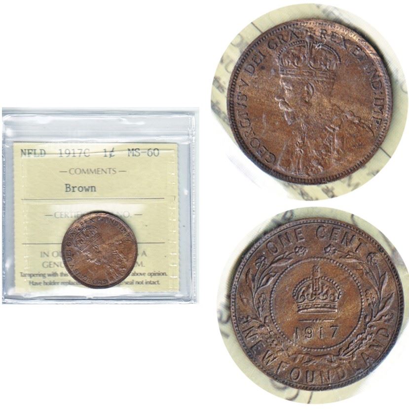Newfoundland 1917c 1-cent ICCS certified MS60 brown