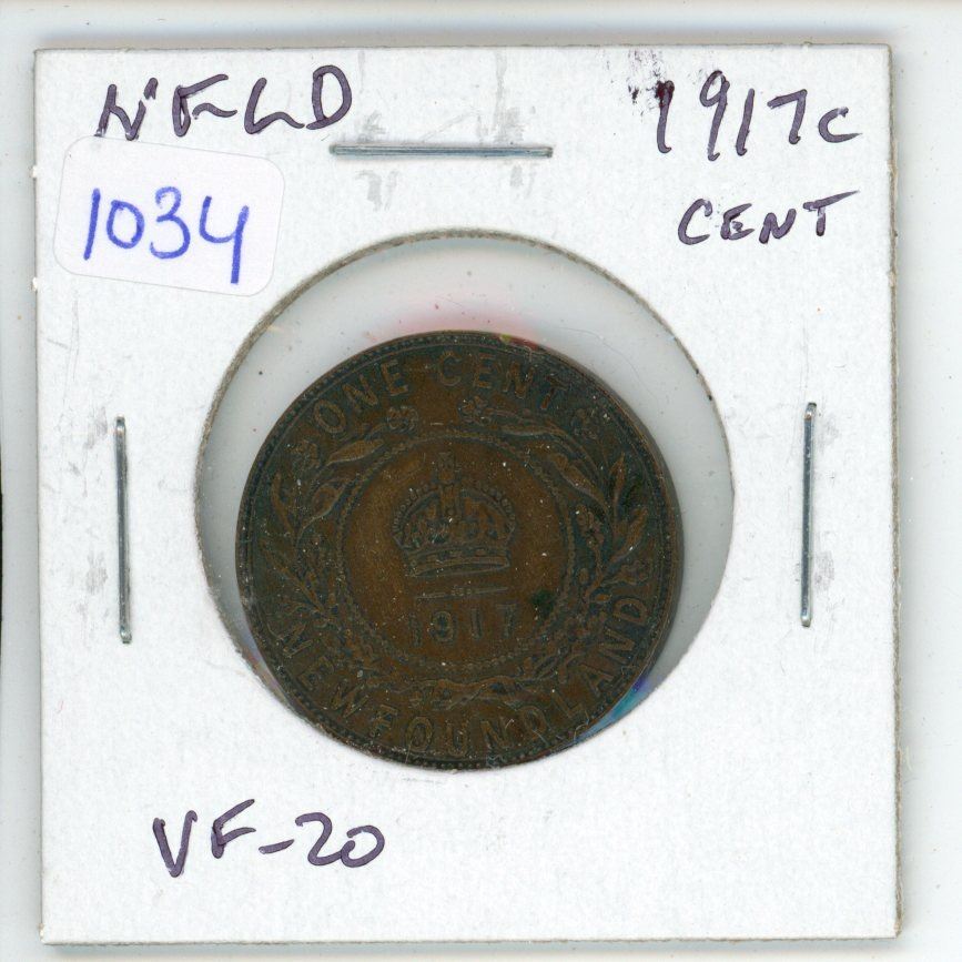 Newfoundland. 1917c Large Cent. Issued during World War I. Minted in Ottawa. VF-20.