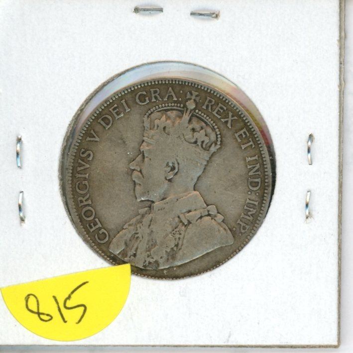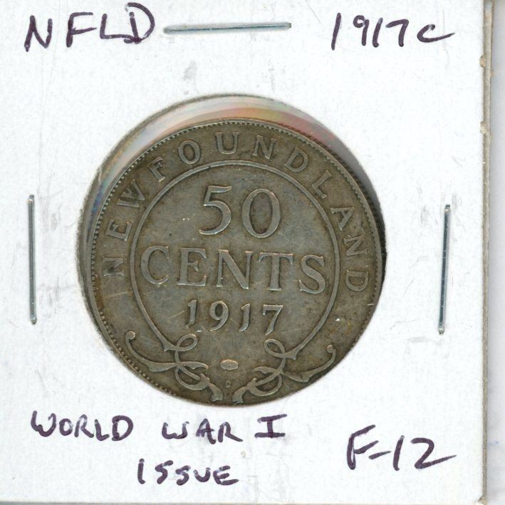 Newfoundland 1917c Silver 50 Cents. Minted In Ottawa because of World War I. F-12 or better.