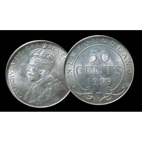 Newfoundland 1919C 50¢ PCGS MS64PQ. Light russet tone over full underlying lustre. Nice coin!