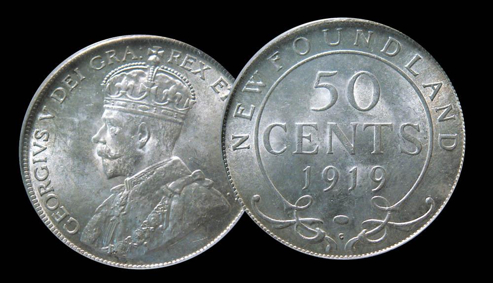 Newfoundland 1919C 50¢ PCGS MS64PQ. Light russet tone over full underlying lustre. Nice coin!