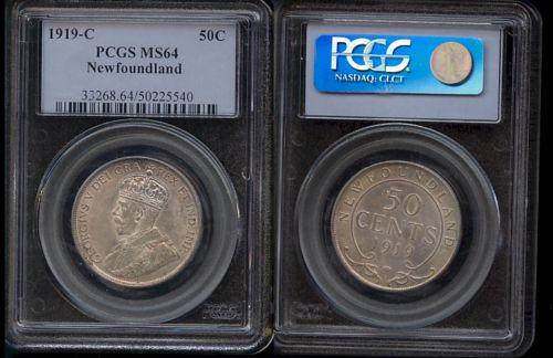 Newfoundland 1919C 50¢ PCGS MS64PQ. Light russet tone over full underlying lustre. Nice coin!