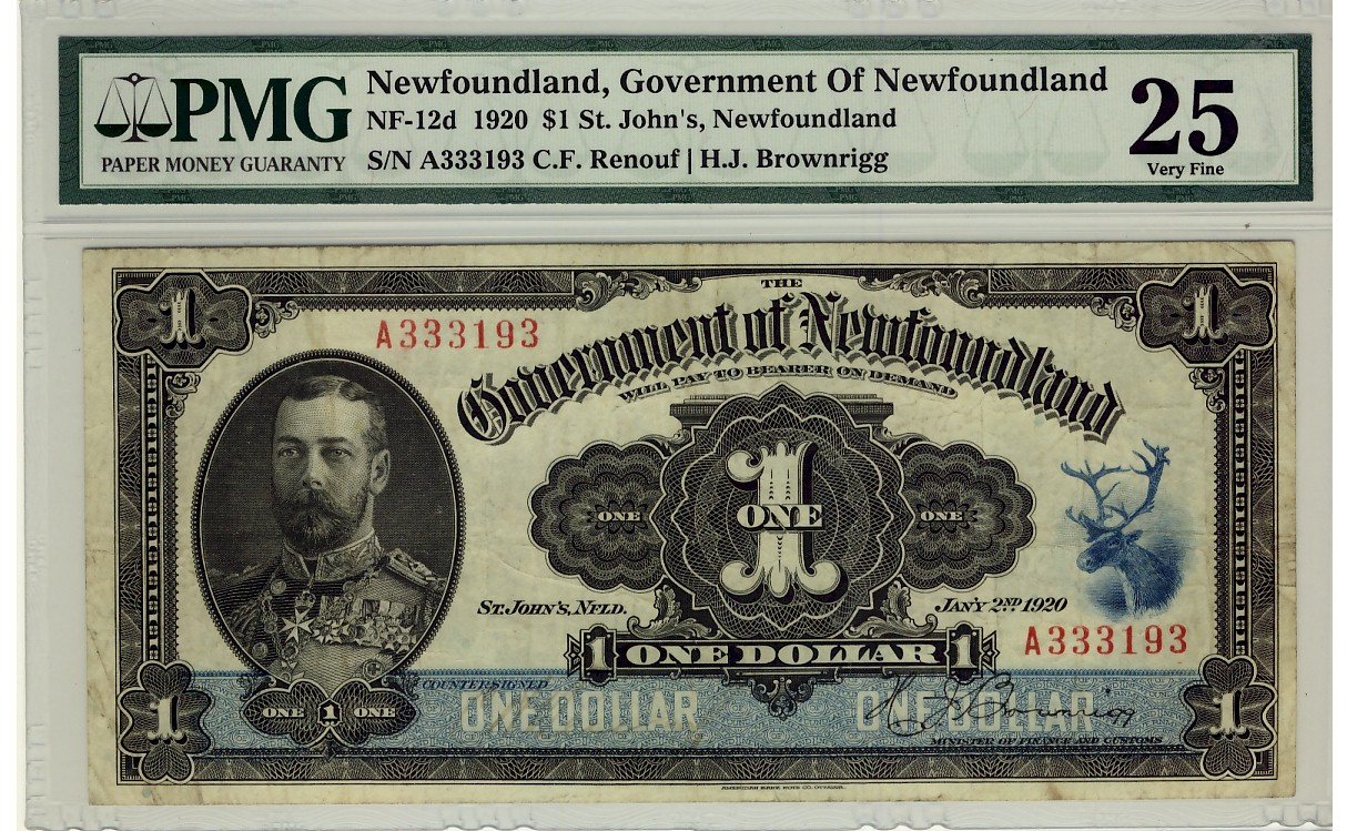 Newfoundland 1920 $1 A333193 NF-12d PMG VF25