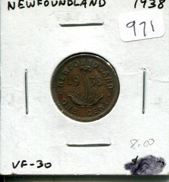 Newfoundland. 1938 Small Cent. Mintage of 500,000. VF-30. Nice.