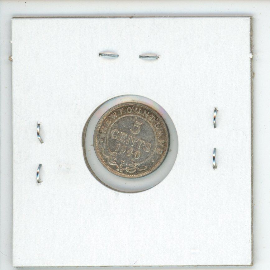 Newfoundland. 1940c Silver 5 Cents. Minted in Ottawa because of World War II. EF-40.