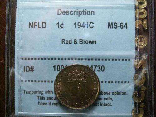 Newfoundland 1941c 1¢ CCCS MS64 red/brown. A nice example with 35% lustre.