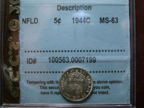 Newfoundland 1944c 5¢ CCCS MS63. Fully brilliant and lustrous.