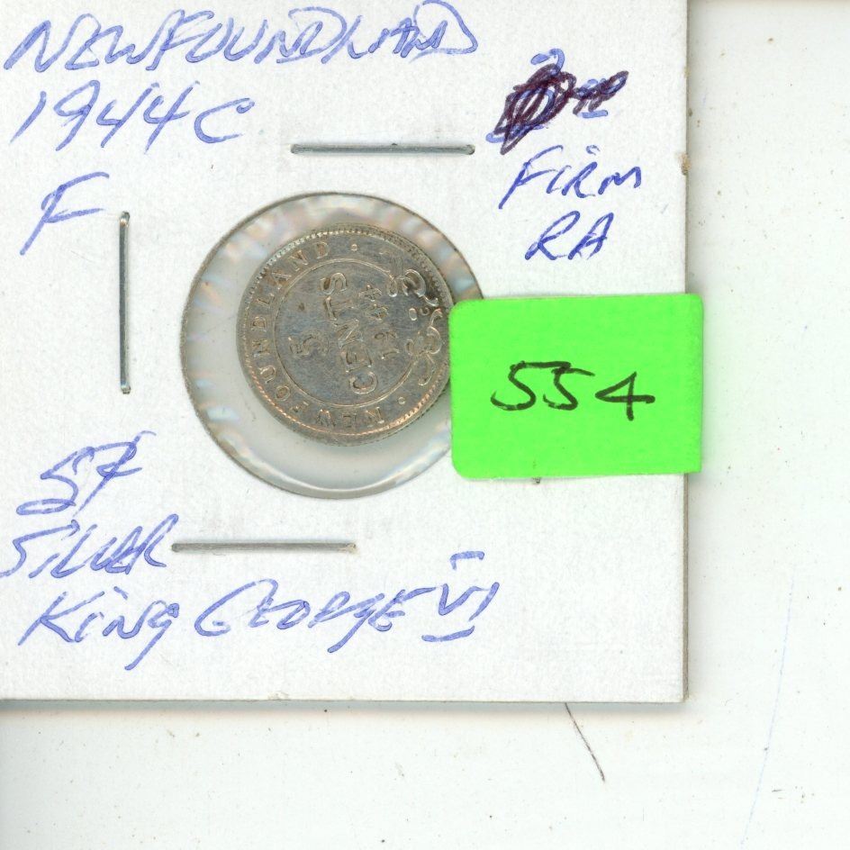 Newfoundland. 1944c Silver 5 Cents. Minted in Ottawa because of World War II. VF.