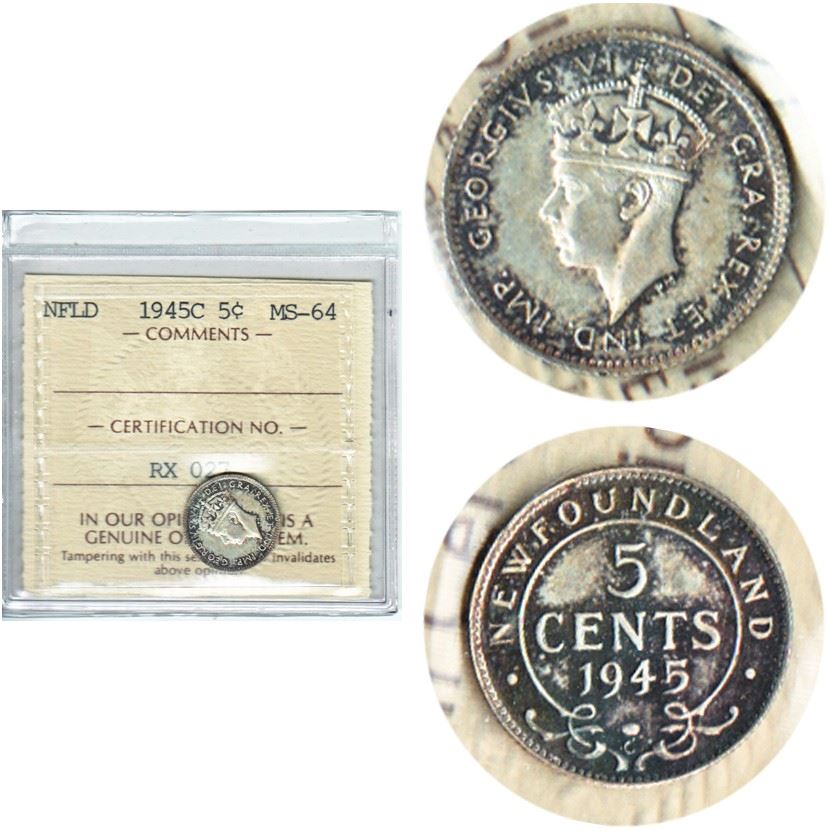Newfoundland 1945c 5-cent ICCS certified MS64.